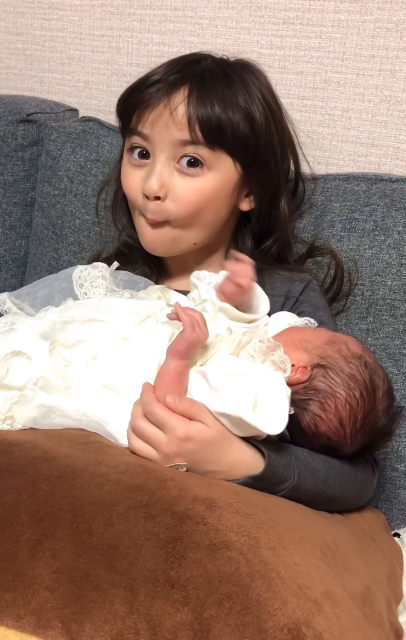 不仅如此,瑠花也超级爱自己的弟弟,镜头捕捉到小姐姐第一次抱起弟弟的珍贵画面:她小心翼翼地搂着软萌的小婴儿,一会儿幸福地眯起眼,一会儿温柔地笑,满满都是爱。