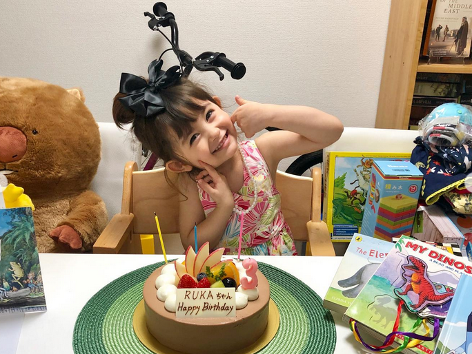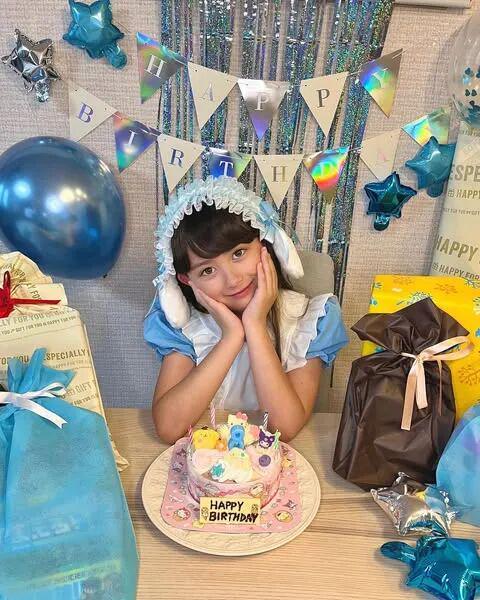 最近瑠花小姑娘也是刚刚度过了自己的8岁生日,画面中,她头戴最爱的“玉桂狗”发箍庆祝,幸福甜美的笑容一如既往。