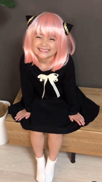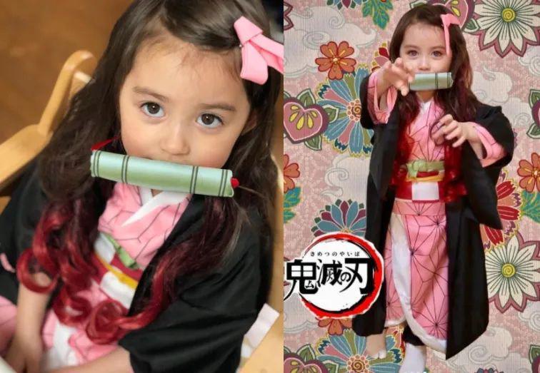 伴随着动画《鬼灭之刃》的爆红,瑠花妈妈也趁机替她Cosplay成祢豆子的角色。