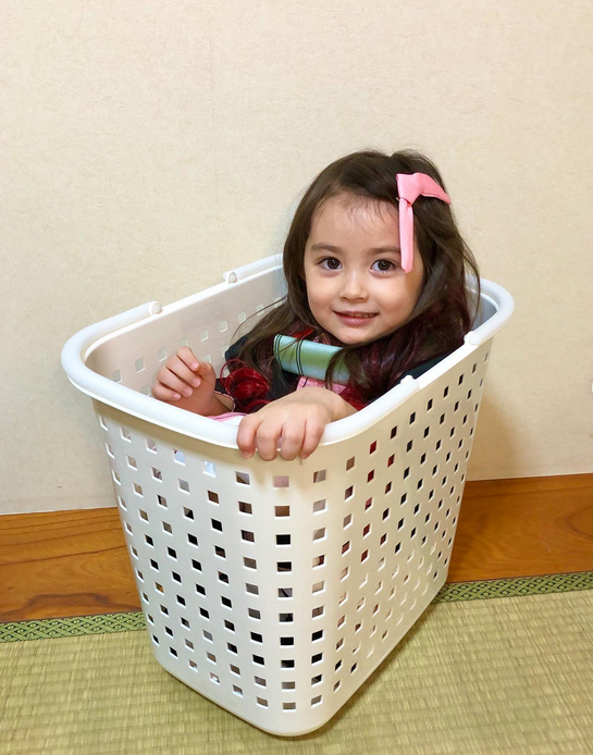 甚至坐在竹篓的祢豆子也改成坐在洗衣篮里,可爱翻拍的模样比动画里的祢豆子还要萌,实在让人招架不住。